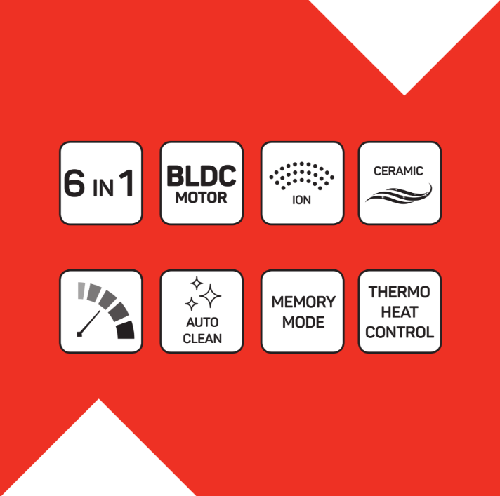 4 Kademeli sıcaklık ve 3 kademeli hız ayarı tüm saç tipleri için hassas kurutma ve şekillendirme sağlar.
